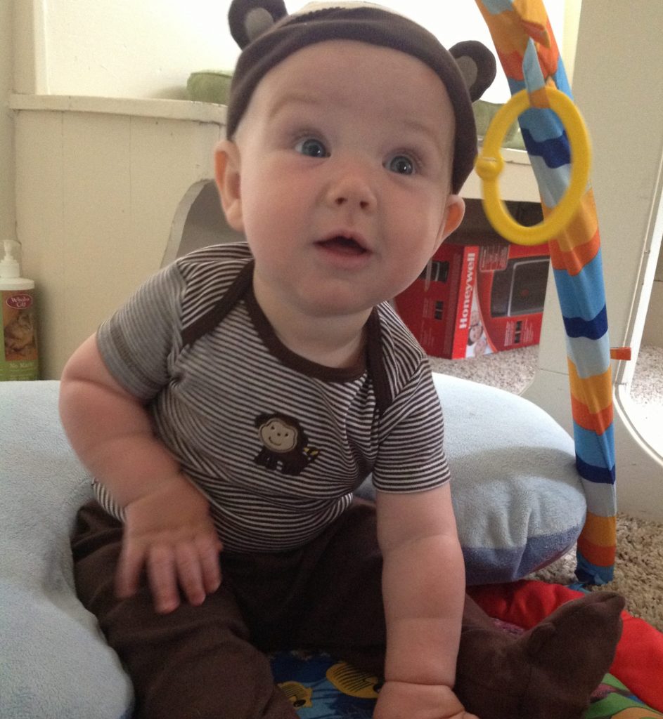 The approximate age to begin offering solids is 6 months, but as with all things, individual babies reach different milestones at different times. With this in mind, we look for indications that the baby’s sensitive digestive tract has matured enough to safely process solid food. Because they weren’t custom engineered for his little body like his milk was, solids are a bigger challenge for his gut, introducing foreign substances to his system.